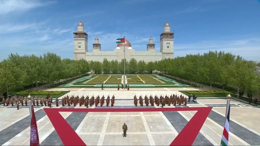 شهد جلالة الملك عبدالله الثاني في قصر الحسينية، الخميس، مراسم رفع العلم، بمناسبة اليوم الوطني للعلم الأردني، التي تصادف في 16 نيسان من كل عام.